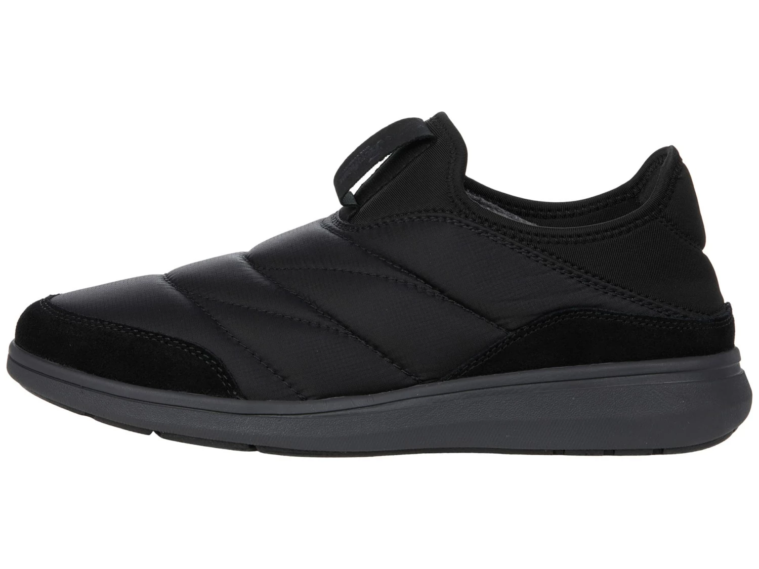 - Crafted in a plush quilted textile upper, textile lining, padded insole, and man-made outsole.