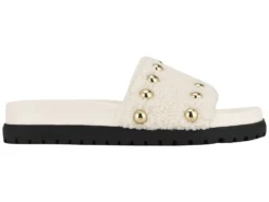 - Upper made of faux shearling and embellished with metallic rounded studs.