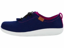 - Push-button toggle with elastic lace accommodates high and low insteps without tying. Breathable open cell foam footbed with molded heel cup and lined with 100% Merino wool felt.